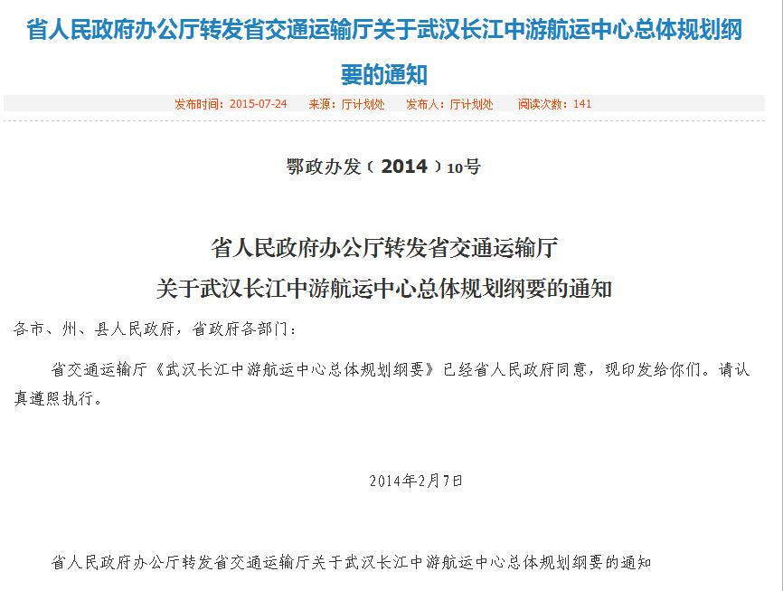 2ÔÂ7ÈÕ £¬£¬£¬£¬£¬ºþ±±Ê¡Õþ¸®ÕýʽÅú׼ʵÑé¡¶Î人³¤½­ÖÐÓκ½ÔËÖÐÐÄ×ÜÌåÍýÏë¸ÙÒª¡·£¨¶õÕþ°ì·¢¡²2014¡³10ºÅ£©